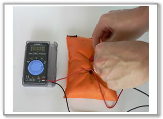 Using a torchlight/light bulb (low voltage D.C) with 2 electrical ends open connected with electrical wires. Place the wires into the bamboo charcoal pack, the torchlight/light bulb lights up brightly for good quality bamboo charcoal. For poor quality bamboo charcoal, the there is no light or very dim light.